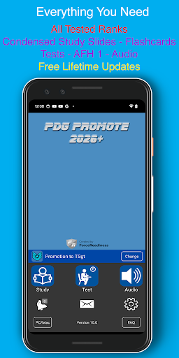 PDG PROmote 2026+ is an educational application specifically designed to help Airmen prepare for their Weighted Airman Promotion System WAPS testing. This comprehensive tool serves as a one-stop solution containing everything needed to study effectively for the exam including situational judgment training audio learning options and smart testing capabilities. The app caters to various learning styles offering features such as reading condensed information from AFH 1 flashcards with optional answer visibility and synchronized audio-visual content. With its intuitive design and adaptive question algorithms PDG PROmote optimizes limited study time by tracking user performance and adjusting test questions accordingly. Available on mobile platforms this app proves invaluable for those seeking promotion within the United States Air Force providing extensive coverage of all testable AFH 1 chapters while maintaining an unaffiliated status with any government entities.