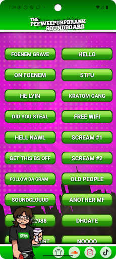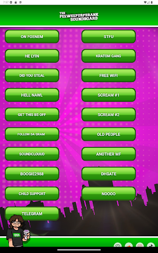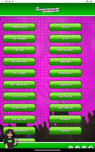 PeeWee Purpdrank's Soundboard is an entertainment application that allows users to enjoy a collection of iconic and hilarious sound quotes from PeeWee Purpdrank directly on their Android devices The app offers a variety of features including a growing library of sounds easy navigation and regular updates with new content PeeWee Purpdrank's Soundboard can be used on mobile devices making it a versatile tool for fans who want quick access to their favorite quotes One of the best things about this app is its commitment to expanding the sound library through future updates This means that users can expect a continually improving experience with more content becoming available over time And if you're using the app on your Android device you can even set these sounds as ringtones or notifications Overall PeeWee Purpdrank's Soundboard is an excellent application for fans looking to relive memorable moments Whether you're looking for classic quotes new releases or customizable options it's a great option