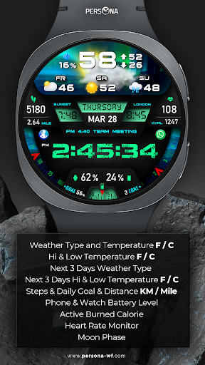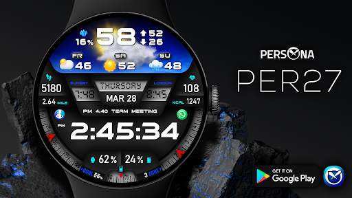 PER27 Galaxy Digital WatchFace stands out as a feature-rich application tailored for smartwatch enthusiasts. Here are five notable features that make this app exceptional 1 Weather Integration - The app provides comprehensive weather details including current weather type and temperature high and low temperatures for the day and forecasts for the next three days in both Fahrenheit and Celsius. This feature helps users stay prepared for changing weather conditions. 2 Health and Fitness Tracking - With capabilities to monitor steps daily goals distance active calories burned floors climbed and heart rate this app serves as a complete health companion promoting an active lifestyle. 3 Customization Options - Offering 10 font styles 10 backgrounds 10 dial designs and multiple LED colors users can tailor their watch face to match their personal style and preferences. 4 Always-On Display - The AOD feature ensures that essential information remains accessible even when the watch is in low-power mode. Users can adjust brightness levels and customize display colors enhancing usability and battery efficiency. 5 Complications and Widgets - Supporting up to seven custom complications such as phone battery level UV index and next appointment reminders this app delivers vital information at a glance helping users stay organized and informed throughout their day.