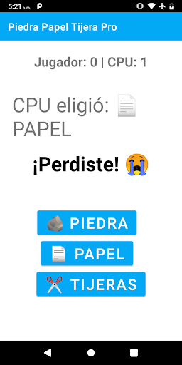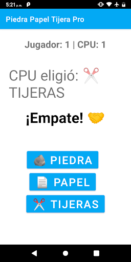 Piedra Papel Tijera Pro is an entertaining mobile application that brings the classic Rock-Paper-Scissors game to your device It allows users to enjoy this timeless hand game anywhere anytime The app offers a variety of gameplay modes including singleplayer against AI and multiplayer options for challenging friends or other players online One of the best features of Piedra Papel Tijera Pro is its intuitive interface which makes it easy for players of all ages to jump right in and start playing The game follows traditional rules where rock crushes scissors scissors cuts paper and paper wraps rock providing a familiar experience for everyone Whether you're using the app to settle a quick decision or simply looking for a fun way to pass the time Piedra Papel Tijera Pro delivers an engaging experience Overall Piedra Papel Tijera Pro is an excellent choice for casual gamers who want to enjoy a simple yet addictive game on their mobile devices
