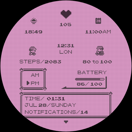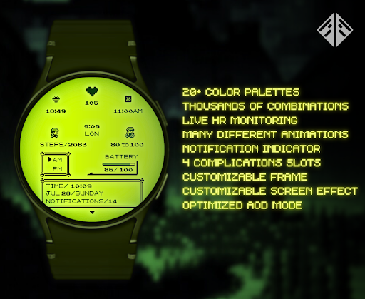 Poke Pixel Retro Watch Face offers a wide array of features that enhance the wearable experience Here are five notable characteristics 1 Customization Options - With over 1000 possible combinations users can tailor the watchface to their exact preferences choosing from 30 color schemes frame styles and other visual elements 2 Retro Design - Inspired by classic gaming consoles the pixel art style provides a nostalgic yet modern appearance setting it apart from standard watchfaces 3 Information Display - The watchface presents essential details at a glance including time date and battery status all within its unique design 4 UserFriendly Installation - The companion app simplifies the installation process guiding users through connecting their smartwatch and setting up the watchface 5 Continuous Support - Regular updates and dedicated support ensure that any issues or feature requests are addressed maintaining optimal performance and user satisfaction
