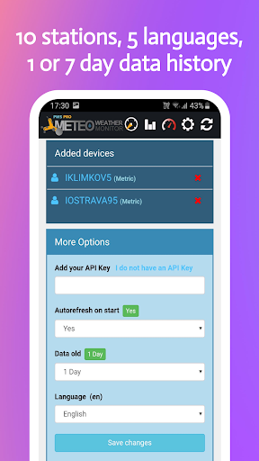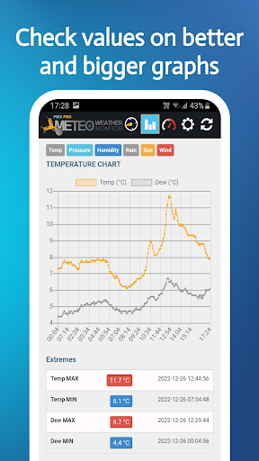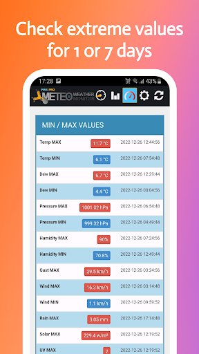 PWS Meteo Monitor PRO is a specialized weather monitoring application designed for owners of Personal Weather Stations (PWS). This unofficial app provides users with both current and daily information from their PWS in an easy-to-use interface. It features basic charts that allow users to check actual values from their stations, making it simple to monitor weather conditions. The app supports up to 10 different stations and offers improved live data loading for various parameters such as temperature, dew point, pressure, humidity, wind speed, and direction among others. Available on Android devices, this no-ads version ensures uninterrupted monitoring. Data is updated in real-time, providing users with the latest weather information. Overall, PWS Meteo Monitor PRO is an excellent tool for weather enthusiasts who want to keep track of detailed meteorological data from multiple personal weather stations.