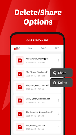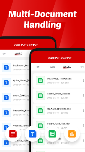 Quick PDF-View PDF is a versatile document management application designed to simplify how users interact with PDF and other document formats on their mobile devices. This app allows users to view, manage, and share various file types including PDF, DOC, PPT, and XLS documents with ease. Its intuitive interface ensures smooth navigation through swipe controls while offering quick sharing options directly from the app. Quick PDF-View PDF is particularly useful for professionals and students who need instant access to important files on the go. The app supports multiple document formats making it an essential tool for business and educational purposes. With its clutter-free design, users can focus on their content without unnecessary distractions. Whether you need to read reports, review presentations, or organize spreadsheets, Quick PDF-View PDF provides a reliable solution across different platforms.