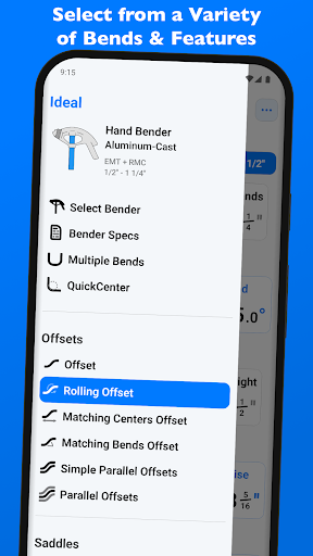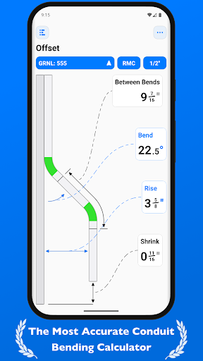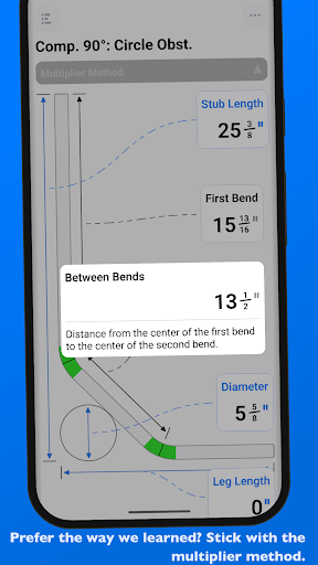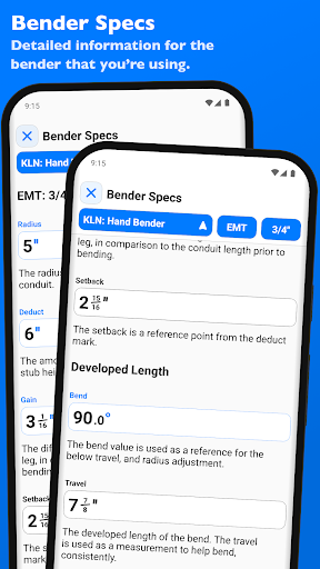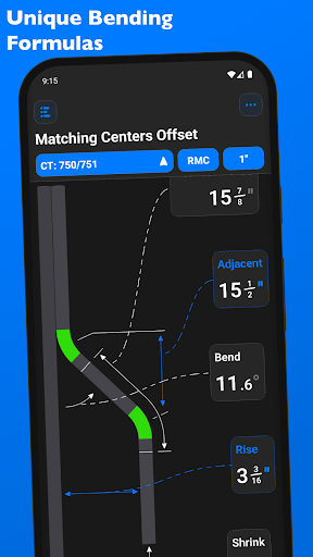 QuickBend is packed with features that cater to both novice and experienced electricians. Here are five standout functionalities that make this app indispensable 1. Precision Measurement System - QuickBend calculates conduit bends using a sophisticated centerline radius algorithm ensuring unparalleled accuracy by factoring in the radius of the shoe bender and conduit specifications. 2. Intuitive Input Options - Users can choose between a number pad or slider bar for data entry providing flexibility based on personal preference and task complexity. 3. Comprehensive Bend Support - The app supports over fifteen types of bends including offsets rolling offsets saddles and compound bends giving users the ability to tackle virtually any conduit project. 4. Bender Specification Management - Electricians can edit and view detailed specs of their benders including centerline radius deduct gain setback and more all visualized within the Bender Specs section. 5. Real-Time Feasibility Checks - With QuickCheck integrated into the app users receive instant feedback on bend feasibility through color-coded warnings helping prevent errors before they occur.