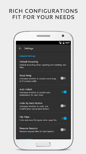 QuickEdit Text Editor Pro stands out with its comprehensive set of features tailored for both general and professional use Here are five key highlights 1 Enhanced Notepad Functionality - Beyond basic text editing QuickEdit offers advanced features such as syntax highlighting for 170+ programming languages automatic indentation and unlimited undo and redo capabilities These features make it ideal for both note taking and complex coding tasks 2 Integrated Online Compiler - The app includes a built-in compiler that supports over 30 programming languages such as Python PHP and Java This allows developers to write compile and test code directly on their mobile devices streamlining the development process 3 Superior Performance Optimization - Even with large files containing more than 10000 lines QuickEdit maintains exceptional speed and responsiveness The app's optimization ensures smooth scrolling and editing without any noticeable lag 4 Cloud Service Integration - QuickEdit enables users to access and edit files stored on popular cloud platforms like Google Drive Dropbox and OneDrive This feature provides unparalleled flexibility in managing documents and code files across devices 5 Customizable User Interface - With options to show or hide line numbers adjust font sizes and choose between light and dark themes users can tailor the editor to their specific preferences and needs This level of customization enhances the overall usability of the app