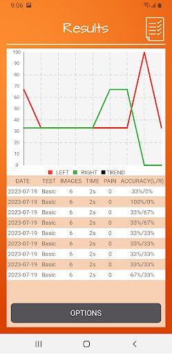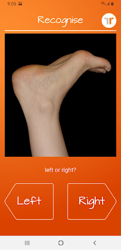 Recognise Foot comes packed with numerous features that enhance the user experience Here are five notable ones 1 Advanced Recognition Training - The app provides tools to test and improve your ability to quickly identify left and right body parts which is fundamental for motor imagery rehabilitation 2 Progressive Difficulty Levels - Users can gradually increase the challenge with different levels ensuring continuous improvement over time 3 Performance Tracking Tools - Detailed graphs and result screens help monitor progress and maintain motivation throughout the rehabilitation process 4 Custom Image Integration - The unique feature of capturing personal images for training adds a personalized touch to the rehabilitation process 5 Clinical Data Sharing - With the ability to export and email results directly to healthcare providers the app bridges the gap between home training and clinical assessment