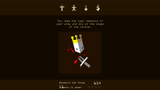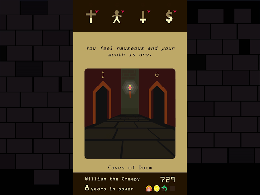 Reigns presents a compelling mix of strategy and storytelling with its innovative gameplay mechanics and historical setting. The swipe-based decision system provides an accessible yet deep experience, while the randomized events ensure high replayability. Players enjoy managing their dynasty through centuries of change, facing unique challenges in each generation. However, the game has some drawbacks. The simplicity of the swipe mechanic might not appeal to those seeking complex strategy games. Additionally, the randomness of events can sometimes lead to frustratingly short reigns. Some players may find the lack of detailed control over kingdom management limiting. Overall, Reigns is an excellent choice for casual gamers looking for a quick but engaging strategy experience with a historical twist.