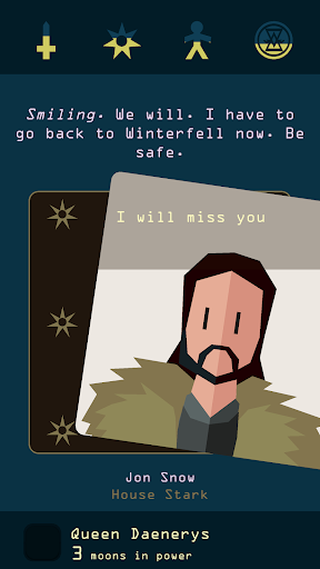 Reigns Game of Thrones is a unique card game that combines the strategic gameplay of Reigns with the rich world of HBO's Game of Thrones. Players assume the role of various iconic characters from the series including Cersei Lannister Jon Snow and Daenerys Targaryen to navigate the complex political landscape of Westeros. The game challenges you to maintain a delicate balance among the kingdom's factions by swiping left or right on requests from advisors and subjects. As you make decisions you must consider the potential consequences and hidden agendas behind each suggestion. Available on both mobile and desktop platforms Reigns Game of Thrones offers an immersive experience that extends beyond the TV series allowing players to explore alternate storylines and outcomes. With its deep strategic gameplay and faithful recreation of the Game of Thrones universe this app provides countless hours of entertainment for fans of the series and strategy game enthusiasts alike