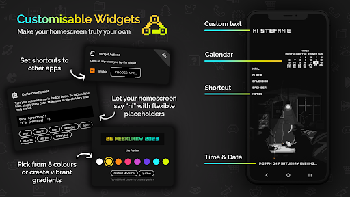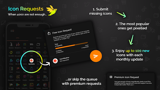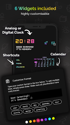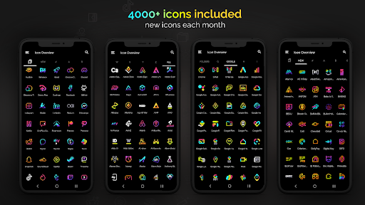 Retro Mode - Icon Pack (Neon) comes packed with features that make personalizing your device both fun and easy. Here are five notable features: 1. Extensive Icon Library - Over 4050 handcrafted pixel art icons included, providing a wide range of app representations in vivid neon colors. 2. Monthly Updates - Regular updates ensure that the icon library stays current with new additions every month, keeping your home screen fresh and exciting. 3. Customizable Widgets - Six different types of widgets including digital clock, analog clock, date display, greeting messages, calendar view, and text shortcuts offer versatile customization options. 4. Multiple Launcher Support - Compatible with more than 20 launchers ensuring broad device support across various Android platforms. 5. Icon Request System - Users can request up to five free icon designs per month directly through the app, allowing personalized touches tailored specifically to individual preferences.