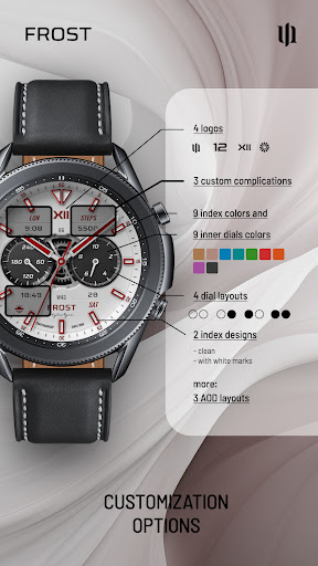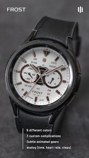 S4U Frost is a premium Wear OS watch face designed for users seeking a realistic analog experience with extensive customization options It offers a classic white dial design complemented by advanced features including 3 custom complications and 4 app shortcuts allowing users to personalize their smartwatch interface The watch face supports devices running Wear OS 4 or higher providing essential information such as time steps heart rate battery level and more through its intuitive display With 9 color options and multiple AOD layouts users can tailor the appearance to match their preferences One of the standout features is the detailed customization menu which enables users to adjust various elements like index colors background patterns and gear designs Additionally the always-on display functionality ensures important information remains accessible while conserving battery life Overall S4U Frost represents an excellent choice for those looking to enhance their Wear OS experience with a sophisticated and versatile watch face