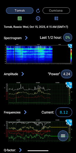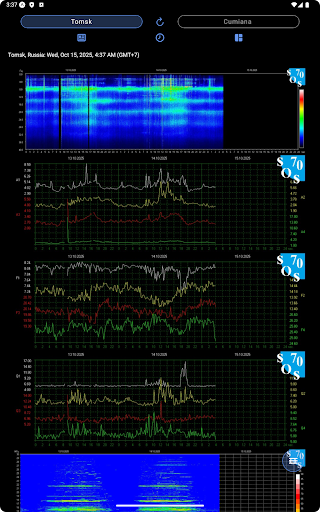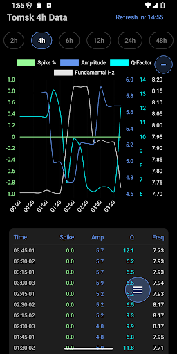 Schumann Resonance is a specialized tool application designed for enthusiasts interested in monitoring the Earth's electromagnetic field spectrum. This app focuses on the extremely low frequency (ELF) peaks known as Schumann resonances, which are global electromagnetic resonances generated by lightning discharges within the cavity formed by the Earth's surface and the ionosphere. The app provides users with comprehensive data including real-time values for Spike Amplitude Frequency and Q-factor alongside spectrogram analysis from locations like Tomsk and Cumiana. Available exclusively on Android devices this application caters to both casual observers and serious researchers who want to stay informed about these natural phenomena. With features such as notifications for significant changes interactive charts and an active chat forum Schumann Resonance ensures that users have access to up-to-date information presented in an accessible format making it an invaluable resource for anyone fascinated by geophysics or environmental monitoring.