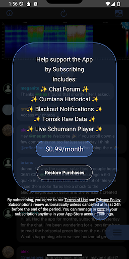 Schumann Resonance offers a rich set of features tailored to those interested in Earth's electromagnetic activities. Here are five notable aspects 1 Real-Time Data Monitoring - Users can view current values for various parameters including Spike Amplitude Frequency and Q-factor providing immediate insights into ongoing ELF activities. 2 Comprehensive Spectrogram Analysis - The app includes detailed spectrograms from different locations allowing users to analyze visual representations of frequency distributions over time. 3 Interactive Historical Data - Subscribers gain access to archives enabling them to explore past records interactively enhancing understanding through longitudinal studies. 4 Educational Resources - Integrated guides and links offer educational content helping users comprehend complex concepts while connecting them with relevant communities and research platforms. 5 Community Engagement - An in-app chat forum fosters discussions among users creating a collaborative environment where enthusiasts can share findings ask questions and discuss developments related to Schumann resonances.
