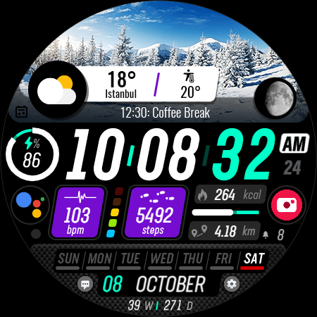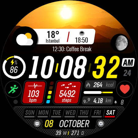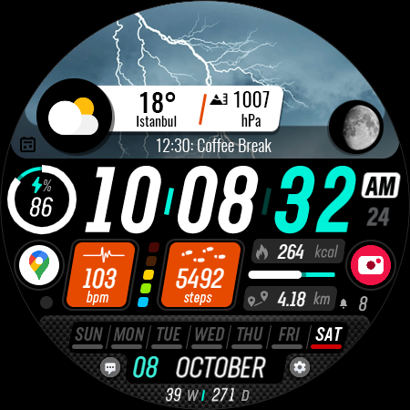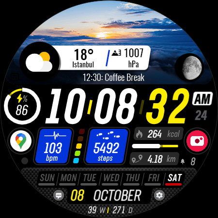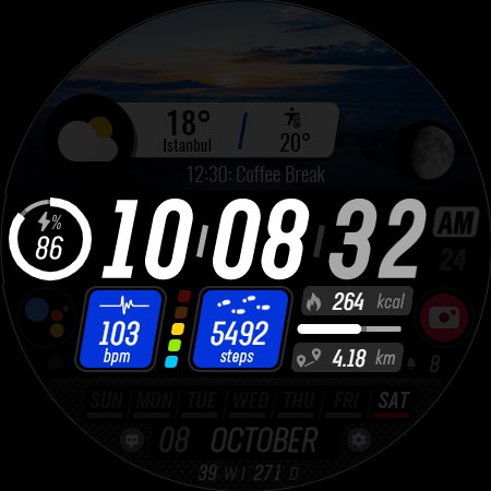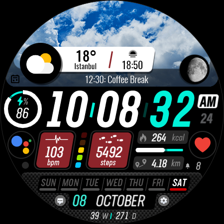 Sharper Clock is a feature-rich watch face application specifically designed for Wear OS devices running API 33 and above. This innovative app transforms your smartwatch into a personalized timepiece with stunning visuals and practical functionalities. The app offers an impressive selection of customizable features including ten selectable sky photos twenty-five color variants and live moon phases. Sharper Clock supports both 12 and 24-hour formats based on your phone's time settings and automatically adjusts between kilometers and miles according to your phone's language settings. It provides essential health and activity tracking features such as step counting calorie tracking heart rate monitoring and battery status. Additionally users can access their next scheduled event view unread notifications and utilize two custom complications along with four shortcuts. The application works seamlessly across different platforms ensuring that whether you're using it on your wrist or viewing it through always-on display you'll have a consistently sharp experience. Overall Sharper Clock stands out as an excellent choice for those seeking both aesthetic appeal and functional utility in their Wear OS device.