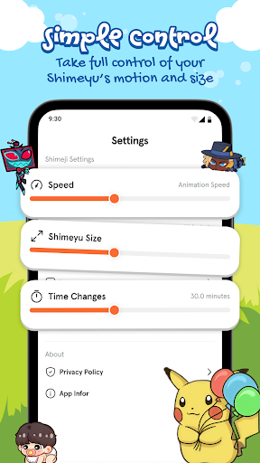 Shimeyu offers an impressive array of features designed to enhance user interaction and enjoyment. Here are five standout features 1. Animated Screen Pets Everywhere - Watch as your chosen pets roam freely across your screen, interacting with icons and wallpapers while reacting to taps and gestures. 2. Huge Collection of Cute Characters - Enjoy an extensive library of kawaii mascots, anime-inspired buddies, and fantasy creatures, with regular updates introducing new seasonal themes. 3. Interactive Touch Controls - Engage with your pets by tapping to pet them, dragging them around, or tossing them, all while they respond with fun animations. 4. Customization & Settings - Personalize your pets' appearance and behavior by adjusting size, speed, and other settings to match your preferences exactly. 5. Multi-Pet Mode - Populate your screen with multiple pets simultaneously, observing their playful interactions and unique behaviors as they coexist on your device.