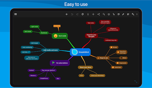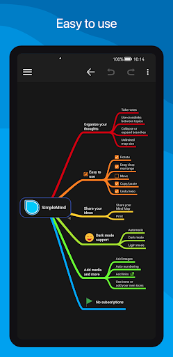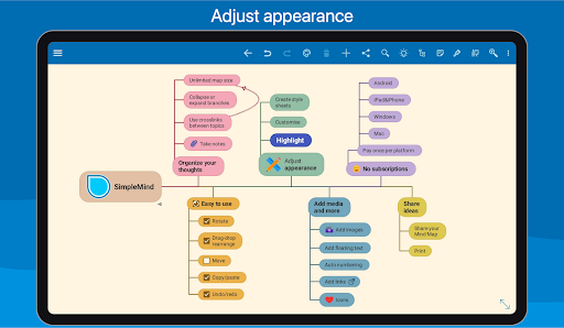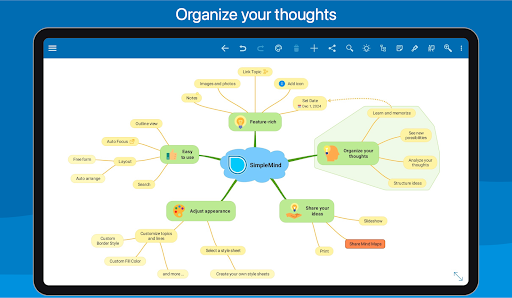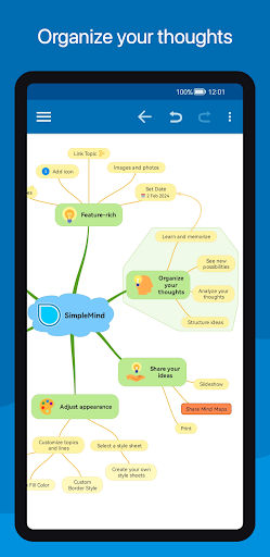 SimpleMind Pro is a comprehensive mind mapping application that enables users to organize thoughts, remember information, and generate new ideas efficiently. The app features an intuitive interface that allows for easy creation and management of mind maps across various platforms including Android, Windows, and Mac. With over 10 years of updates and improvements, SimpleMind Pro offers reliable performance and continuous enhancements based on user feedback. Its versatility makes it suitable for diverse fields such as business, education, legal, and medical sectors. One standout feature is its seamless synchronization capability using cloud services like Dropbox, ensuring your mind maps are always up-to-date across devices. Additionally, the app supports adding multimedia elements and documents, sharing options, and extensive customization possibilities, making it a powerful tool for both personal and professional use.