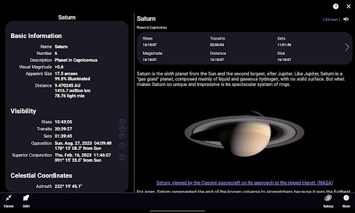 SkySafari 7 Plus is a comprehensive astronomy application designed for both amateur and professional stargazers. This powerful space simulator offers advanced telescope control and an immersive stargazing experience on Android devices. The app stands out with its complete support for Android 10 and above, providing users with cutting-edge features like the Events Finder which dynamically generates astronomical events visible tonight and far into the future. With Notifications revamped for better customization and Telescope Support embracing next-gen protocols such as ASCOM Alpaca and INDI, SkySafari 7 Plus ensures seamless connectivity to numerous astronomical devices. Unique features like OneSky and SkyCast enable real-time observation sharing and guided sky tours respectively. Additionally, the Sky Tonight section helps plan your nightly observations with detailed information on celestial happenings. Enhanced Observation Tools make data management efficient while small touches like editing Jupiter GRS Longitude Value or improved Moon Age calculation enrich user experience further. Available on mobile platforms, this app updates regularly to keep up with technological advancements making it invaluable for anyone passionate about exploring the cosmos.