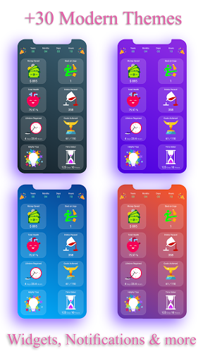 Sobriety Counter EasyQuit Pro stands out with its diverse feature set Here are five notable features 1 Health Improvement Tracker - The app includes a countdown timer that shows how different parts of the body heal over time providing tangible evidence of the benefits of quitting alcohol 2 Financial Savings Calculator - Users can track how much money they save by not buying alcohol and set specific goals for rewards creating a practical incentive to stay sober 3 Personal Motivation Reminders - The app allows users to write down their reasons for quitting and reminds them of these motivations daily helping maintain focus on personal goals 4 Gradual Reduction Plan - The Quit Slowly mode offers a structured approach to reducing alcohol consumption with customized plans and reminders ensuring a smoother transition to sobriety 5 Customizable User Experience - With 28 beautiful themes and two home screen widgets users can tailor the app to their preferences while keeping their progress front and center These features combine to create a supportive environment for individuals seeking to overcome alcohol dependency