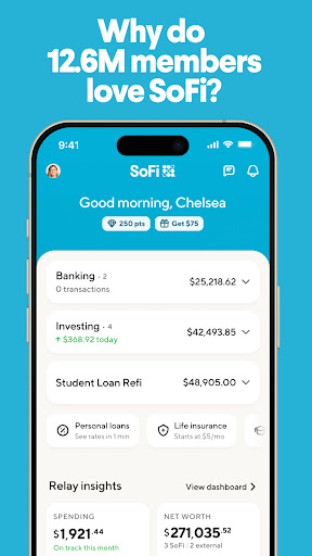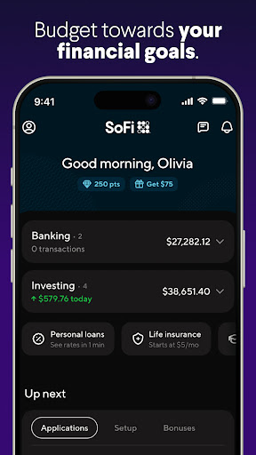 SoFi is a comprehensive financial application that combines mobile banking investing and money management tools. It offers users the ability to perform various banking activities such as sending money instantly depositing checks digitally paying bills online and tracking spending through budgeting tools. Additionally SoFi provides investment opportunities including commission-free stock trading and automated investing options. The app also features high-yield savings accounts personal loans credit score monitoring and robust security measures. Available on mobile platforms SoFi ensures users have access to their finances anytime anywhere while offering educational resources and customer support. Overall SoFi serves as an all-in-one financial solution for individuals seeking convenience security and growth in their financial activities.
