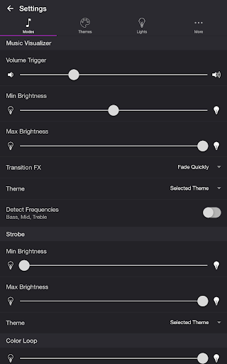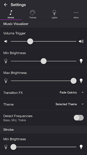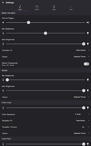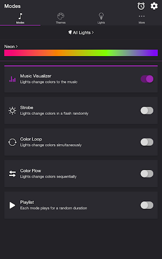 Soundstorm for Hue is a popular app with a ton of features and customization options. Here are five of our favorites 1. Music Visualizer - Watch your Philips Hue lights dance to the rhythm of your favorite songs with adjustable effects based on bass mid and treble frequencies 2. Customizable Themes - Choose from predefined themes or create your own with unique color palettes for different modes 3. Detailed Settings Control - Fine-tune every aspect of the light effects including brightness transition styles and frequency triggers for maximum personalization 4. Multiple Modes - Enjoy various lighting modes such as Strobe Color Loop Color Flow and Playlist each offering distinct visual experiences 5. Light Group Management - Easily manage individual lights or groups of lights allowing for complex setups and synchronized effects across multiple rooms or zones