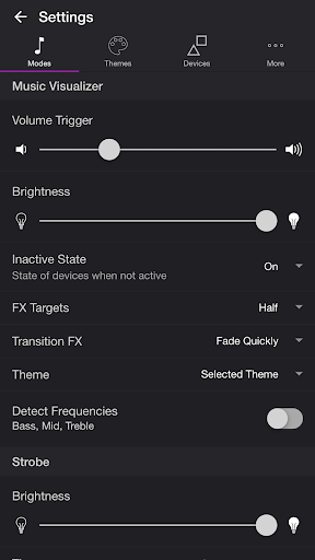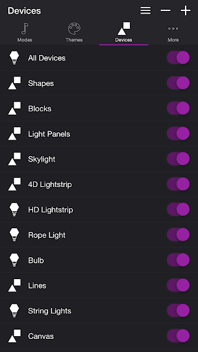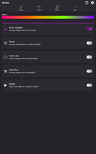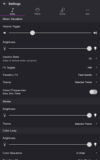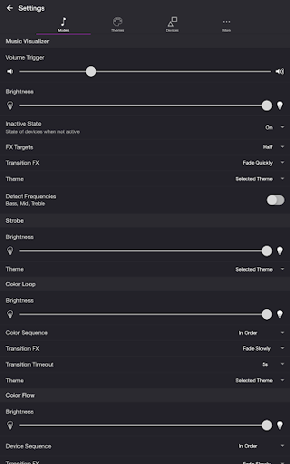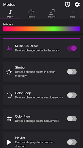 Soundstorm for Nanoleaf is packed with features designed to enhance your lighting experience Here are five notable ones 1 Music Visualizer - This feature syncs your Nanoleaf devices with music in real-time allowing lights to pulse and flash according to bass midrange or treble frequencies creating an engaging audiovisual experience 2 Customizable Themes - Choose from predefined themes or design your own with unique color sequences tailored for different modes such as Color Loop and Color Flow offering personalized aesthetics 3 Device Management - Easily add and manage multiple Nanoleaf devices through the Devices tab where you can toggle select and reorder lights ensuring precise control over your light show setup 4 Advanced Settings - Fine-tune every aspect of the lighting effects including brightness transition styles and frequency triggers providing complete customization to match your preferences 5 Playlist Mode - Automate your light show by setting up playlists where various modes play in sequence for random durations adding variety and spontaneity to your visual displays