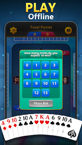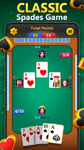 Spades - Classic Card Games stands out with its diverse set of features designed to provide an authentic yet modern card gaming experience Here are five notable features 1 Offline Play Capability - Enjoy uninterrupted gaming without the need for an internet connection thanks to built-in bots that offer challenging matches anytime anywhere 2 Strategic Bidding System - Test your prediction skills by bidding the number of tricks you expect to win adding a layer of strategy to each round 3 Expressive Emojis - Communicate with opponents using fun emojis to express your confidence or taunt them during matches 4 Exciting Winning Animations - Celebrate victories with visually appealing animations that make each win more satisfying 5 Progressive Scoring System - Track your progress through a scoring system where reaching 500 points first determines the winner encouraging continuous improvement and engagement