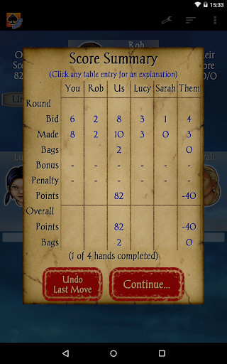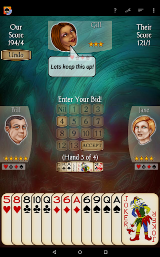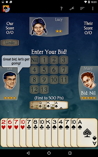 Spades Pro is a sophisticated card game application that brings the classic 4-player contract trick-taking game to mobile devices. Developed by a top developer recognized in 2013 and 2015, this app stands out with its advanced bidding system and creative gameplay intelligence. The game features 21 CPU characters ranging from beginner to expert levels, offering players diverse skill challenges. With classy graphics, smooth gameplay, and highly scalable difficulty, Spades Pro delivers an exceptional gaming experience on both tablets and phones. Notable features include customizable backgrounds, undo and hint options, and various rule variations like Jokers and Barmore. The app also introduces new social elements where CPU players communicate through speech bubbles and facial expressions. Whether you're a casual player or a seasoned pro, Spades Pro offers a comprehensive and engaging card gaming experience.