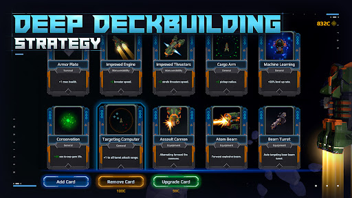Star Survivor Premium stands out among space shooters with its innovative features and deep customization options. Here are five key aspects that make this game exceptional: 1. Unique Deck-Building System - Players can create customized upgrade decks by unlocking and purchasing new cards during each run, allowing for strategic power-up combinations that evolve as you level up in combat. 2. Multiple Ship Selection - Choose from various ships, each offering distinct gameplay mechanics and equipment synergies, providing diverse tactical approaches to surviving the endless waves of enemies. 3. Physics-Based Movement - The game incorporates Newtonian physics for ship control, adding a layer of skill-based challenge as you navigate through thousands of bullets and enemies while maintaining precise positioning. 4. Dual Game Modes - Experience both the structured progression of Campaign adventure mode and the randomized challenges of Challenge Mode, offering varied gameplay experiences that cater to different play styles. 5. Extensive Upgrade System - From crafted equipment to powerful weapons, the game provides numerous ways to enhance your vessel, unlock new ships, and stack advantages in your favor through resource management gained from enemy kills.