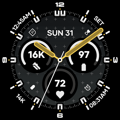 Starlyn Analog Watch Face is a sophisticated Wear OS application that brings together symmetry contrast and modular geometry in a refined analog aesthetic. Designed with the modern Watch Face File format this app merges functional utility with contemporary design principles making it suitable for both active daily use and professional environments. The watch face features a rational layout centered around timekeeping with three central universal complications framed by four additional zones ensuring optimal legibility and structural harmony. Key elements include a built-in day and date display customizable color schemes multiple bezel and hand styles and two geometric background patterns. With three distinct Always-on Display modes users can enjoy performance and battery efficiency across devices while maintaining clarity at a glance.