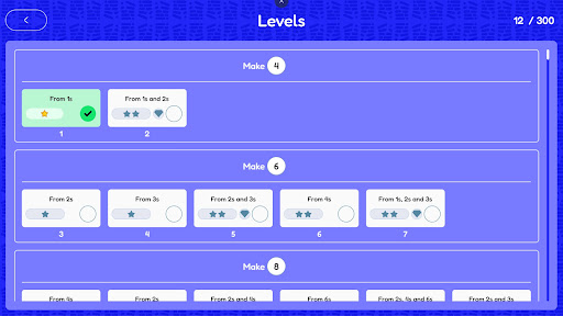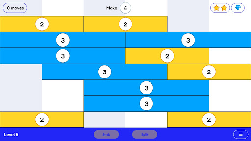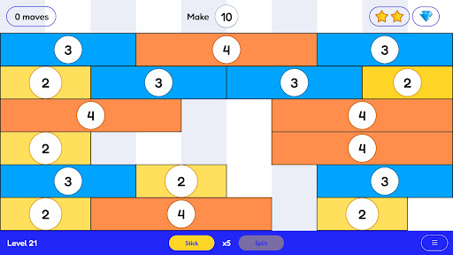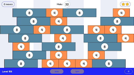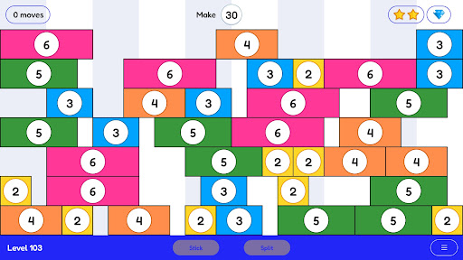 Stick and Split offers a variety of features designed to enhance math learning 1 Visual Learning Approach - The app uses a highly visual method where users stick or split numbers to understand multiplication and division concepts 2 Extensive Level Selection - With more than 300 levels users can enjoy hours of mathematical practice while gradually increasing the difficulty 3 Interactive Gameplay - The hands-on mechanics allow players to actively engage with numbers promoting better retention of math facts 4 Progressive Difficulty - Levels are structured to become more challenging as users advance ensuring continuous learning and skill development 5 Confidence Building - By practicing math in a fun and absorbing way users gain confidence in their arithmetic abilities