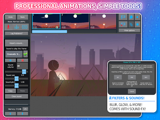 Stick Nodes Pro stands out with its extensive range of animation tools and customization options. Here are five notable features that make this app exceptional 1. Advanced Export Options - Users can export their animations as high-quality MP4 videos without watermarks, providing professional-grade output for sharing across platforms. 2. Customizable Frame-Tweening - This feature automatically smooths out animations by generating intermediate frames, allowing creators to achieve fluid motion without excessive manual work. 3. Virtual Camera System - The built-in camera functionality enables panning, zooming, and rotating within scenes, giving animators greater control over their visual storytelling. 4. Extensive Library Integration - With access to over 30,000 downloadable stickfigures and compatibility with Minecraft skins, users have an expansive selection of characters to incorporate into their projects. 5. Professional Sound Design - The Pro version allows adding sound effects to individual frames, enabling creators to enhance their animations with synchronized audio elements for more engaging content.