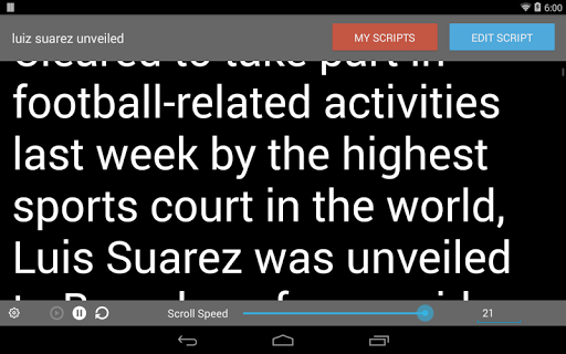 Teleprompter Pro is a professional teleprompter application designed specifically for Android devices including both phones and tablets It serves as an essential tool for anyone who needs to deliver speeches or presentations smoothly The app allows users to manage unlimited scripts with advanced features such as script import from text files mirror mode for teleprompter rigs and full screen display One of the standout features is its remote control functionality via bluetooth keyboard which provides users with seamless operation Additionally Teleprompter Pro offers customization options like font and background color selection adjustable scrolling speed and text size making it adaptable to various presentation needs With its comprehensive set of tools this app is suitable for a wide range of users including broadcasters filmmakers musicians business professionals and public speakers Overall Teleprompter Pro delivers a reliable and customizable teleprompting experience that enhances presentation delivery across different professional fields