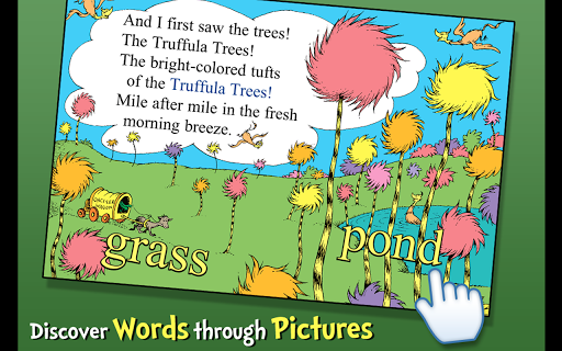 The Lorax is an interactive storybook app that brings Dr. Seuss's cautionary tale of greed and environmental destruction to life. This engaging application allows young readers to explore the story of the Lorax as he attempts to protect the Truffula Forest from the greedy actions of a factory owner. Designed for children aged 3-6, the app offers three different reading modes including read-to-me with highlighted narration, read-it-myself, and auto-play. The app also features vocabulary learning tools where kids can tap words and objects to hear them read aloud and learn their meanings. With its vivid illustrations and interactive elements, The Lorax creates an immersive reading experience that promotes literacy skills while entertaining children. Available on mobile devices, this app provides an excellent way for parents and educators to introduce young learners to important environmental themes and foster a love for reading through fun and interactive activities