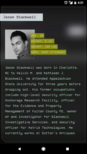 The Vigil Files Case 1 is an adventure application that immerses players in a thrilling detective story where they must use real detective skills to solve a complex mystery surrounding a man's disappearance. This game stands out among Android detective games by offering an incredibly realistic experience through VigilOS an advanced operating system used by detectives worldwide. Players can investigate suspects send emails and texts make phone calls hack into companies and crack codes. The game challenges players to think outside the box as uncovering the truth is not straightforward and the stakes are higher than they initially seem. Available on Android The Vigil Files provides an engaging experience for those who enjoy solving puzzles and unraveling mysteries. The game updates in real time meaning characters respond throughout the player's day adding to the immersion. Overall The Vigil Files Case 1 is an excellent choice for anyone looking for a challenging and immersive detective experience