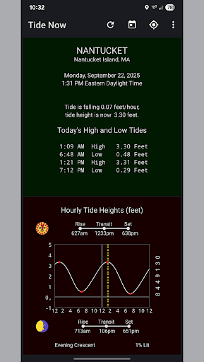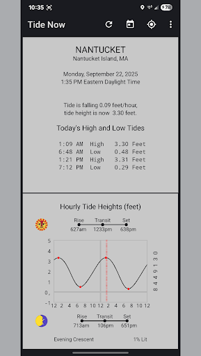 Tide Now USA stands out as a feature-rich tide prediction app Here are five notable features 1 Detailed Predictions - The app provides precise tide forecasts for over 1700 locations across the U S using official data sources ensuring reliable information until 2100 2 Customizable Displays - Users can choose from multiple graph styles including detailed views with sun and moon timelines or simplified daylight-only displays catering to different preferences 3 Favorites System - With support for up to eight shortcuts users can save frequently accessed stations and switch between them easily enhancing workflow efficiency 4 Comprehensive Information - Beyond basic tide data the app includes sunrise sunset moonrise moonset and phase details offering a holistic view of daily astronomical events 5 Extensive Settings Options - Through the action bar users can access numerous commands such as map views station information display modes clock formats and more providing unparalleled control over their experience
