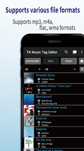 TK Music Tag Editor -Complete- is a popular app with a ton of features and customization options. Here are five of our favorites: 1 Direct Tag Writing - Tags are written directly to the music files, ensuring metadata remains consistent across devices and platforms. This feature provides users with reliable and permanent tagging solutions. 2 Simultaneous Filename Editing - When editing tags, users can also modify the filename format, allowing for better organization and easier identification of music files. 3 Playlist Creation - Create and easily edit playlists, giving users the ability to curate personalized listening experiences and organize songs according to their preferences. 4 Multi-format Support - Edit m4a, flac, wma file formats, and detect mp3 files with m4a formats, offering flexibility and compatibility with various audio file types. 5 Extensive Metadata Editing - Editable tags include title, artist, album, cover art, lyrics, and more, providing comprehensive control over music file information