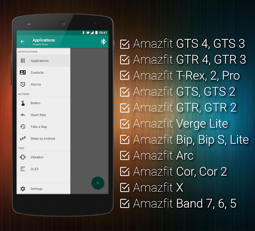 Tools & Amazfit is packed with features that cater to both personalization and health monitoring needs. Here are five notable features 1. Advanced Notification System - Get detailed incoming call and app notifications with fully customizable times conditions and vibration patterns tailored to your preferences. 2. Health Monitoring Dashboard - Access continuous heart rate monitoring personalized heart rate zone settings and detailed sleep analysis through seamless integration with Sleep as Android. 3. Customizable Controls - Utilize button control profiles and sensor actions to create a personalized virtual menu for controlling music volume phone vibrations and more directly from your bracelet. 4. Power Nap and Idle Alerts - Activate the power nap feature for quick rests and receive idle alerts when you've been inactive for too long helping maintain an active lifestyle. 5. Extensive Compatibility and Widgets - Enjoy full support for multiple Amazfit models and customize widgets for daily fitness goals bracelet battery status and heart rate data enhancing usability across different devices.