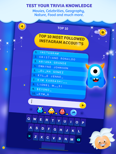 Top 10 Trivia Quiz is an engaging trivia application that allows users to test their knowledge across a wide range of categories through over 1000 levels. It offers a variety of features including powerups to help solve puzzles when stuck by revealing letters or the whole answer. The app can be used on mobile devices making it a versatile tool for entertainment and learning. One of the best things about Top 10 Trivia Quiz is its diverse category selection which includes movies music TV world geography science sports celebrities food business nature and video games. This means that users can explore different areas of interest and continuously challenge themselves with new trivia questions. And if you're using Top 10 Trivia Quiz daily you can even earn rewards in the form of coins that can be used for powerups. Overall Top 10 Trivia Quiz is an excellent application for expanding general knowledge. Whether you're looking for entertainment mental stimulation or a way to learn new facts it's a great option.