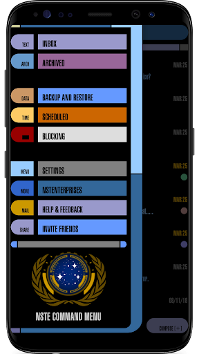 TREK T.I. SMS is a popular app with a ton of features and customization options. Here are five of our favorites: 1. Customizable Interface - Users can personalize their messaging experience with unique sci-fi inspired themes and color schemes reminiscent of futuristic designs from decades ago. 2. Advanced Settings - The app provides extensive controls for security privacy data limits dual SIM configurations group messaging notifications and delayed messaging ensuring users have complete command over their communication preferences. 3. Popup Messages - With popup messages users can quickly reply to texts without needing to open the main app offering convenience and saving time during busy moments. 4. Theme Variety - TREK T.I. SMS includes various theme options allowing users to change contact colors background styles and overall appearance to suit their personal tastes. 5. Functional Widgets - The app offers functional widgets that enhance accessibility by providing quick access to frequently used features directly from the home screen improving overall usability.