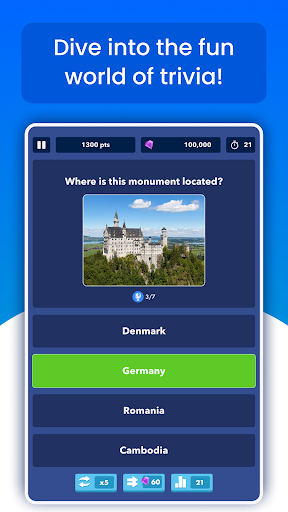 Trivia Quiz Knowledge Premium is an engaging trivia game that challenges players' knowledge across multiple categories. This premium app offers a diverse range of question sets in areas such as Geography, Entertainment, History, Art and Literature, Science and Nature, and Sports. Players can start a new game by selecting their preferred category and answering seven questions in the shortest time possible. The game also features a random mode for those who want a mix of all categories. Available on mobile platforms, this app provides an interactive way to test and expand one's knowledge while competing against the clock. With its varied content and performance-tracking statistics, Trivia Quiz Knowledge Premium is an excellent tool for anyone looking to challenge themselves intellectually and improve their general knowledge base.