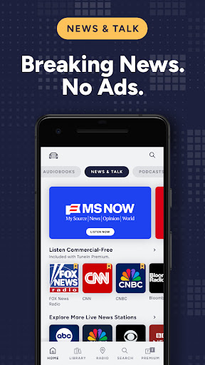 TuneIn Radio is a comprehensive audio streaming application that provides access to over 100000 live AM FM radio stations from around the world along with exclusive content from news sports music podcasts and audiobooks The app offers a personalized listening experience allowing users to tune into their favorite stations or explore new ones across various genres such as Todayu2019s Hits Classic Rock and Smooth Jazz It stands out by offering more variety than platforms like Pandora or iHeartRadio and includes features like Apple Music Radio integration TuneIn ensures users stay informed with trusted news sources including CNN FOX News Radio and BBC while sports enthusiasts can follow MLB NFL NHL and college sports with game time notifications and curated content Available on multiple platforms including iOS tablets and connected devices TuneIn also integrates with smart home systems like Amazon Alexa Google Home and in car systems such as CarPlay For an enhanced experience TuneIn Premium offers ad free content exclusive features and unlimited audiobook access making it a versatile tool for all audio needs
