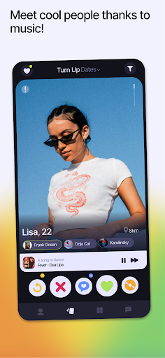 Turn Up is a dating application that allows users to connect with others based on shared musical tastes. It offers a variety of features including customizable blind tests, direct messaging, and profile swiping. Turn Up can be used on mobile devices, making it a versatile tool for finding love or new friends. One of the best things about Turn Up is that it uses an algorithm to match users with similar music preferences. This means that users can instantly discover nearby people who share their musical taste. And, if you're using Turn Up on your mobile device, you can even create your own blind tests. Overall, Turn Up is an excellent application for meeting new people. Whether you're looking for dates, friends, or unlimited blind tests, it's a great option.