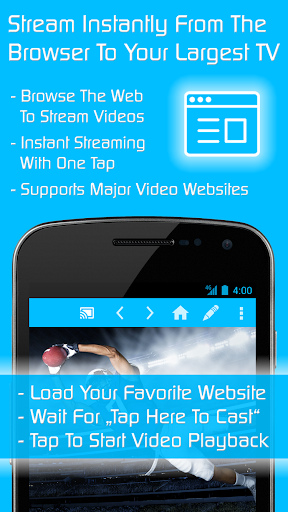 TV Cast is a comprehensive streaming browser application that enables users to stream and watch web videos online movies livestreams and live TV shows on a wide range of devices including Chromecast Samsung TV LG TV Sony TV Hisense TV Sharp TV TiVo Roku Fire TV DLNA and Google Cast or Android TV powered devices such as TVs media centers and gaming consoles The app serves as a LICENSE KEY unlocking premium features in all free Video & TV Cast editions on Android devices With over 10 million users this ultimate app provides an ad-free experience with advanced functionalities like website ad-blocking video playback controls customizable homepage desktop mode unlimited bookmarks and more It supports multiple device brands making it a versatile tool for seamless media streaming across different platforms Whether you're looking to enjoy your favorite online content on a bigger screen or seeking an uninterrupted streaming experience TV Cast delivers excellent value for users who want premium features without limitations
