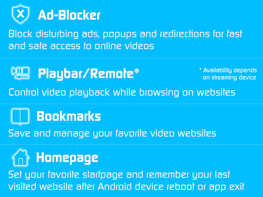 TV Cast offers a variety of powerful features designed to enhance the streaming experience Here are five notable highlights 1 Ad-Free Browsing - The built-in ad-blocker removes all advertisements popups and redirections ensuring a clean and uninterrupted browsing experience while streaming content 2 Customizable Homepage - Users can set a personalized homepage and enable the option to remember their last visited website providing quick access to frequently used sites 3 Desktop Mode - This feature allows users to cloak their mobile device as a desktop PC which helps detect video links on websites that may not support mobile playback 4 Unlimited Bookmarks - Save and manage an unlimited number of bookmarks for websites and videos making it easy to organize and revisit favorite content 5 Enhanced Playback Controls - The playbar or remote functionality enables fast forward rewind and video scrubbing during streaming offering greater control over media playback These features collectively make TV Cast a robust solution for users seeking a seamless and customizable streaming experience