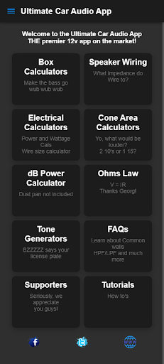 Ultimate Car Audio App offers a diverse set of features that make it an essential tool for car audio enthusiasts Here are five notable characteristics that set this app apart 1 Subwoofer Wiring Solutions - The app provides detailed guidance on single and double subwoofer voice coil wiring helping users optimize their audio system's performance 2 Box Design Calculators - With dedicated calculators for subwoofer boxes and kerf designs users can create custom enclosures tailored to their specific audio equipment 3 Electrical System Analysis - The app offers valuable suggestions for car electrical systems ensuring optimal power delivery and system protection 4 Comprehensive Calculation Tools - Featuring Ohm's Law calculator tone generator and sweep generator the app enables precise measurements and adjustments for various audio parameters 5 Regular Updates and Improvements - The developers consistently add new features and enhancements based on user feedback making the app increasingly valuable over time