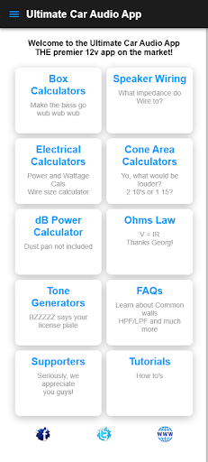 Ultimate Car Audio App is a comprehensive productivity application specifically designed for car audio enthusiasts and professionals It offers an extensive collection of accurate tools and calculators that cater to various aspects of car audio system design and optimization The app provides solutions for subwoofer wiring calculations cone area measurements amplifier power suggestions and electrical system recommendations making it an indispensable tool for anyone working with car audio systems Available on both iOS and Android platforms this app stands out as the leading choice in its category thanks to its wide range of specialized features and user friendly interface One of the key strengths of Ultimate Car Audio App is its ability to simplify complex calculations through intuitive tools like the subwoofer box calculator kerf calculator Ohm's Law calculator tone generator and sweep generator These features ensure users can make precise adjustments and informed decisions when setting up or upgrading their car audio systems Overall Ultimate Car Audio App serves as an excellent resource for car audio professionals and hobbyists alike Whether you need help with wiring configurations box designs or system tuning this app provides all the necessary tools in one convenient location
