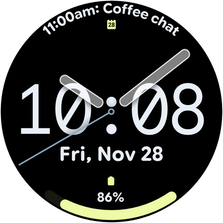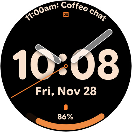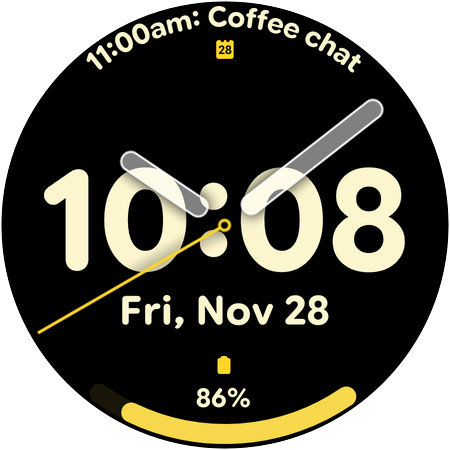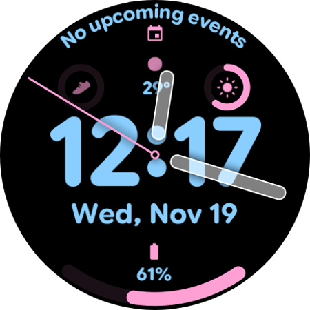 Ultra Hybrid 2 stands out with its diverse feature set Here are five key highlights 1 Customizable Design Options - Users can choose from 30 stunning color themes and 5 unique clock font styles allowing for complete personalization to match individual preferences 2 Versatile Complications - With support for up to 5 customizable complications including battery weather steps heart rate and calendar users can access important information at a glance 3 Battery Friendly Optimization - The app features an efficient Always On Display AOD mode ensuring maximum battery efficiency without compromising on style or usability 4 Dual Time Format Support - Seamlessly switch between 12 hour and 24 hour time formats catering to different user preferences and regional standards 5 Bold Hybrid Aesthetics - Combining digital time with smooth analog hands this watch face delivers a modern yet classic look suitable for fitness work travel or casual everyday wear