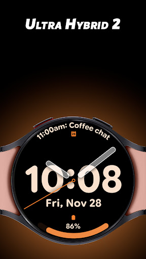 Ultra Hybrid 2 is a premium hybrid watch face designed for Wear OS devices that combines digital time with smooth analog hands and crisp typography offering users a stylish and functional experience With 30 vibrant color themes 5 unique clock fonts and customizable complications it caters to those seeking both aesthetics and utility The app supports 12 24 hour time formats includes battery friendly Always On Display AOD and offers features like weather steps heart rate making it ideal for everyday use from fitness tracking to professional settings Its elegant design ensures readability and performance while maintaining an optimized battery life giving users the perfect balance of style and functionality Whether you prefer minimalist tones or bold colors Ultra Hybrid 2 provides full customization options for a personalized smartwatch experience