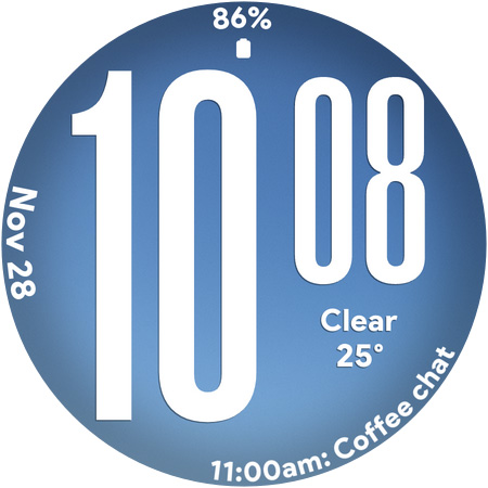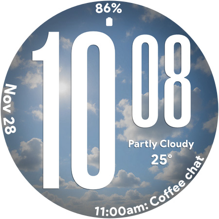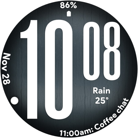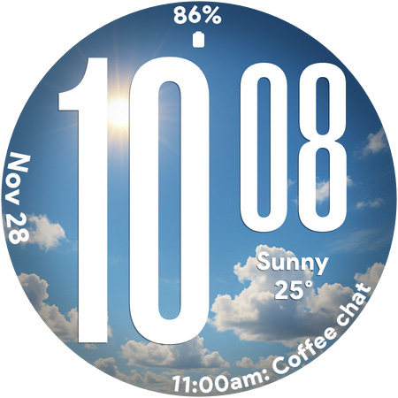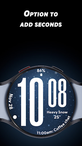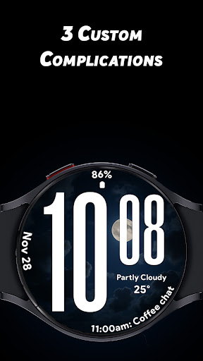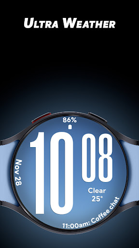Ultra Weather stands out with its variety of customization options and user friendly features Here are five key highlights 1 Big Bold Digital Time Display - The oversized digits ensure maximum readability even at a quick glance which is especially useful during workouts or while traveling 2 Dynamic Weather Backgrounds - The watch face displays real time weather visuals that adapt to current conditions providing users with instant weather awareness directly from their wrist 3 Custom Complications Support - With three customizable slots users can personalize their watch face by adding widgets like weather forecasts step counters battery indicators and more 4 Battery Friendly Always On Display - The optimized AOD mode allows users to view essential information without draining the battery making it practical for all day use 5 12 24 Hour Time Format Flexibility - Users can switch between 12 and 24 hour formats depending on their preference ensuring the watch face fits seamlessly into their daily routine