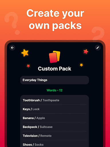 Unmask - Who's the Imposter? offers an array of exciting features that enhance gameplay. Here are five notable ones: 1. Varied Roles - Players can choose between Imposter Mr White and Civilian roles each with unique challenges and strategies. 2. Extensive Word Library - The game includes hundreds of secret words and themed word packs providing diverse topics for guessing. 3. Flexible Player Count - Supporting games with 3 to 24 players it adapts well to different group sizes from intimate friend circles to larger party settings. 4. Social Deduction Mechanics - Through indirect questioning and vague answering players must use their deduction skills to identify the Imposter or Mr White. 5. Quick Engaging Rounds - Each round is fast-paced and intense ensuring all players remain engaged and invested in the outcome.