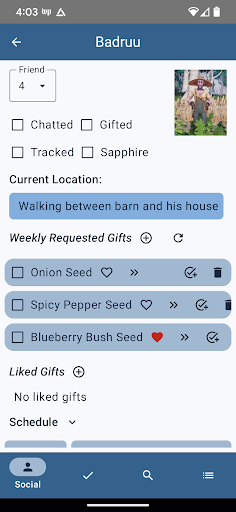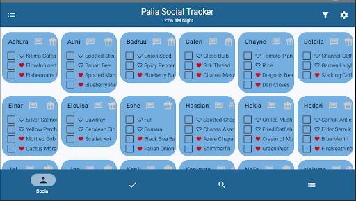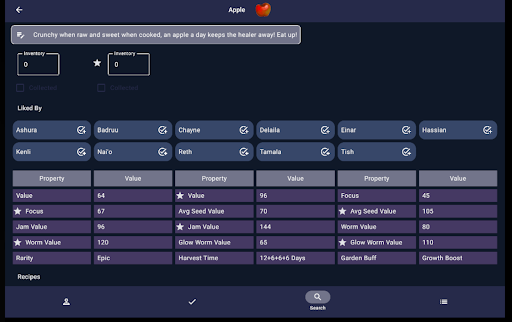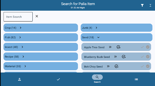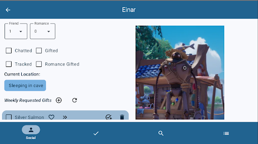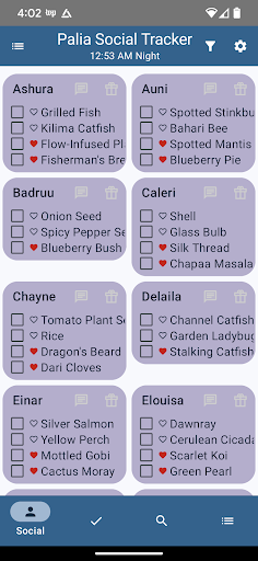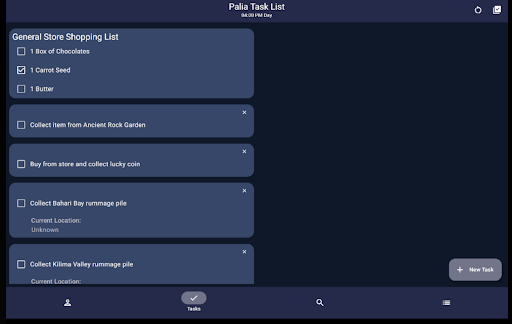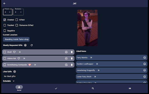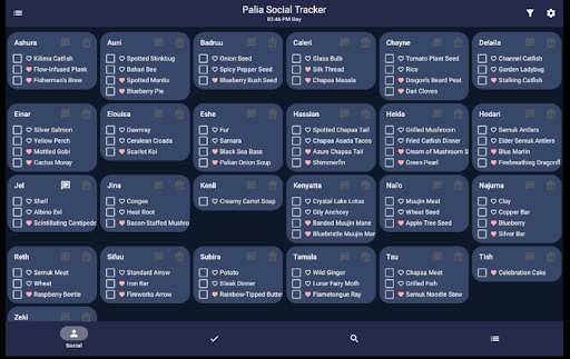 Unofficial Palia Notebook offers a robust set of features that cater to various aspects of the Palia gaming experience. Here are five key highlights 1. Villager Management - Track daily chats and gifts monitor schedules discover current locations and identify likes for each villager. The automatic update feature ensures chat and gift statuses are always current. 2. Social Tracker - View all villagers at once check interaction statuses and filter based on completed actions. The search function allows you to find specific items and see which villagers have requested or liked them. 3. Task Management - Create and edit tasks specify required items link tasks as prerequisites and assign gifts to villagers all within a dedicated task editor. 4. Item Catalog - Check off collected items input inventory details and view villager preferences for specific items. Processing values for seeds preserves and worms help optimize item usage for maximum profit. 5. Advanced Search - Browse items by category name location biome and time. Special filters for furniture sets and types assist in home decoration while detailed tracking aids in bundle and accomplishment progression.